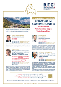 Ferner bieten wir ein sorgfältig ausgewähltes Führungskräftetraining mit verschiedenen Seminarangeboten unter dem Motto "Leadership im Gesundheitswesen" an, das sich an Ärztinnen und Ärzte sowie ltd. Pflegefachkräfte und ltd. Hebammen wendet.